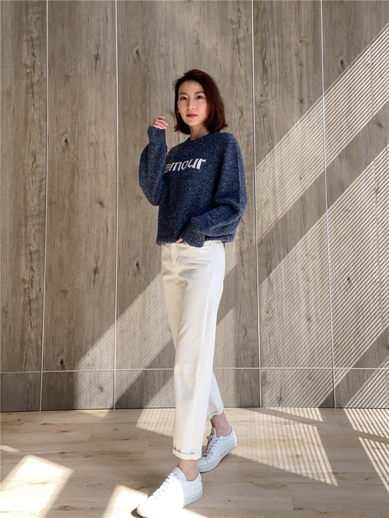 Jimmy Fashion Italian Wool Flower Yarn Alphabet Round Neck Loose Pullover Senior Casual Knitted Sweater Women