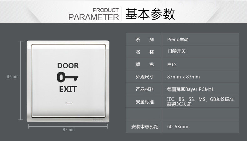 Schneider Funchamps White Access Switch Emergency Button Manual Key Fire Emergency Glass Door Doorbell-Taobao
