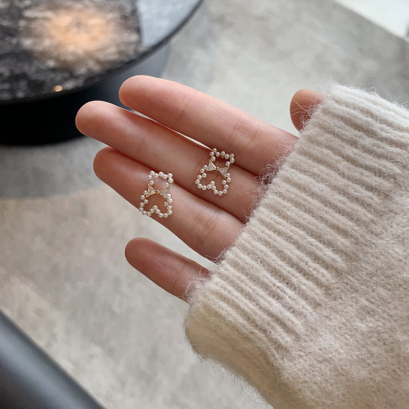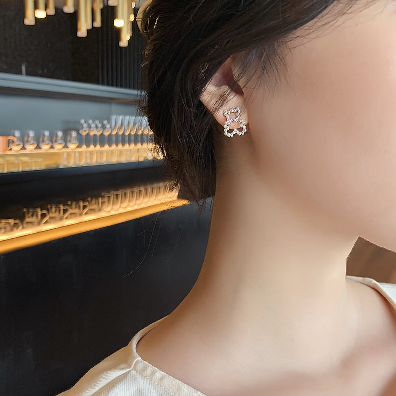 Net red explosion bear pearl stud earrings 925 sterling silver silver needle earrings 2020 new fashion earrings women drop earrings