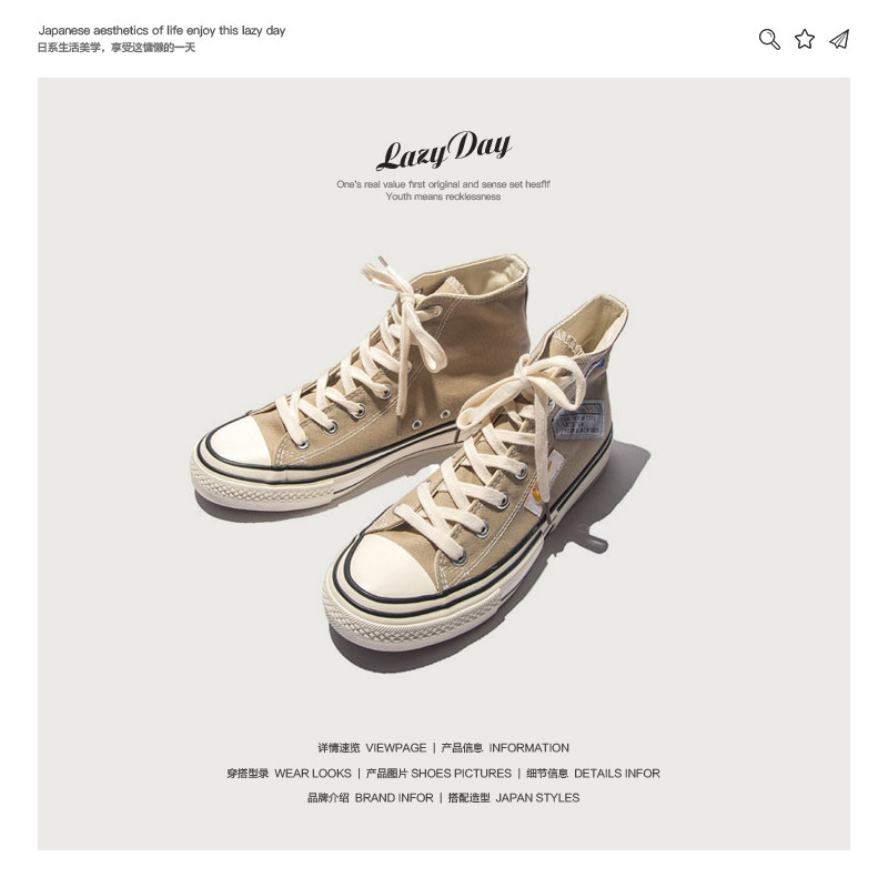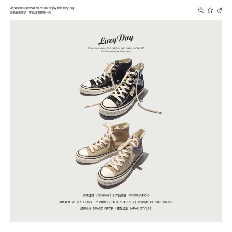 LAZY DAY original homemade classic wild high-top canvas shoes black and white couple shoes college style strappy men's shoes