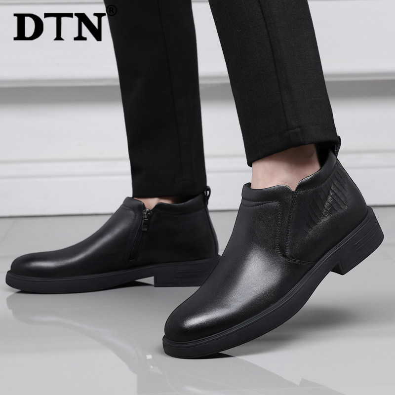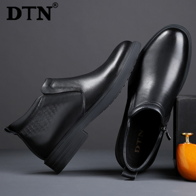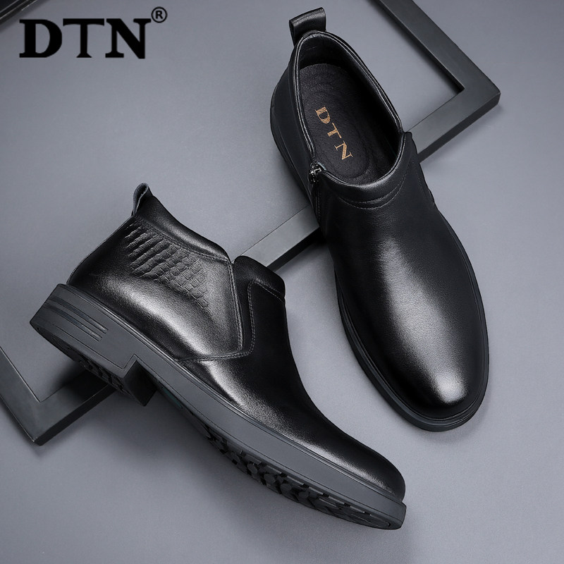 DTN winter casual non-slip high-top shoes men's boots cotton shoes men's plus velvet warm leather British leather boots dad shoes