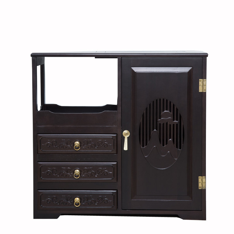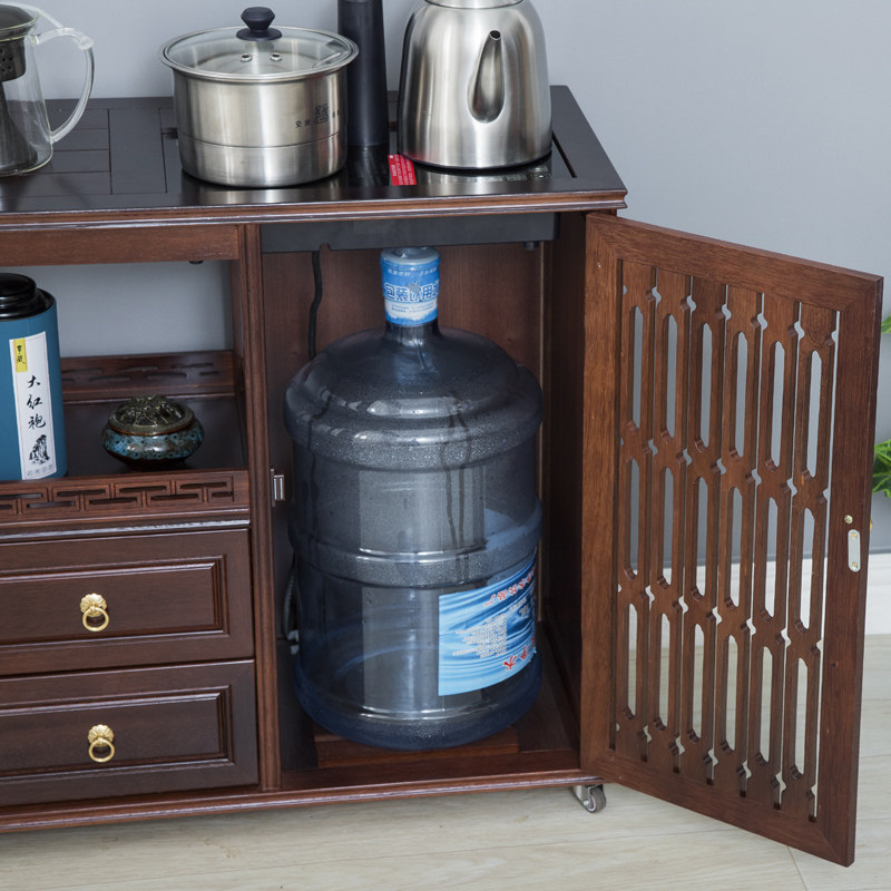 Soliwood tea cabinet household new Chinese multi-function mobile tea cupboard tea cupboard tea cabinet in one table and side cabinet living room