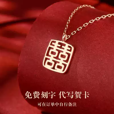 Chinese wind shaking sound Net red happy character necklace female Xia pure silver jewelry double happy choker Zi Tai Fook Star Pendant