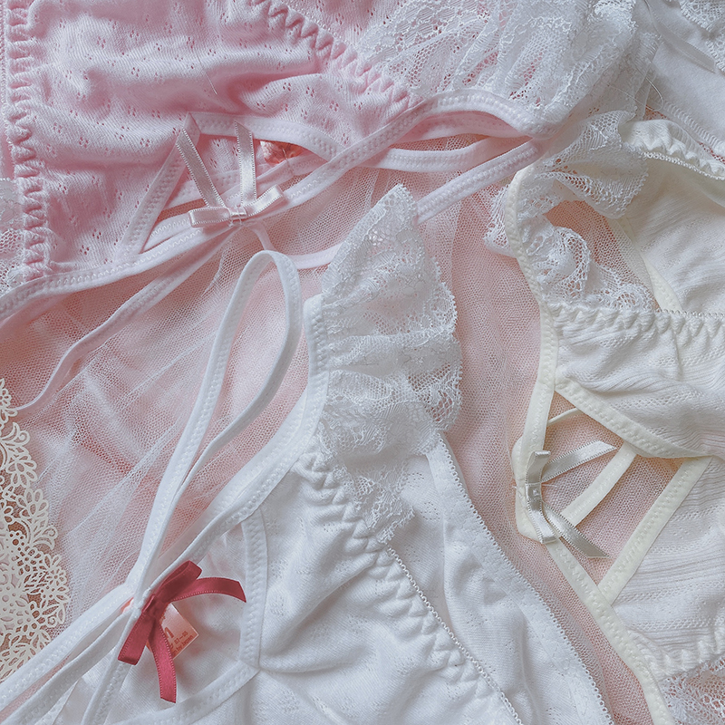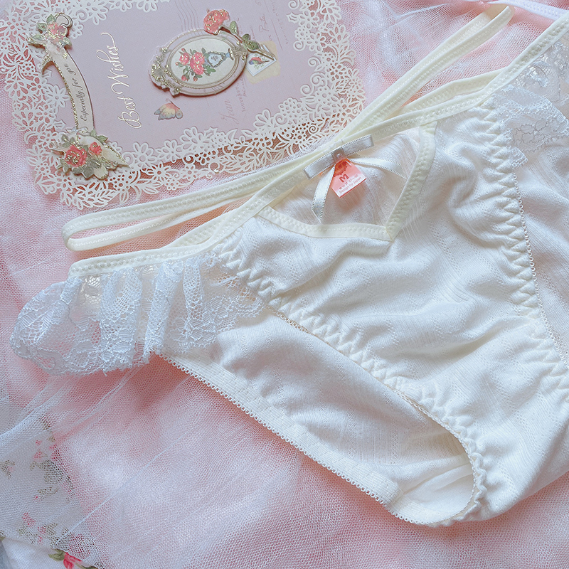 Strawberry Mousse ~ Cotton Sun Tie Underpants Teen Cute Hollowed-out Comfort Student Sexy Cardiator Low Waist Rope Lace