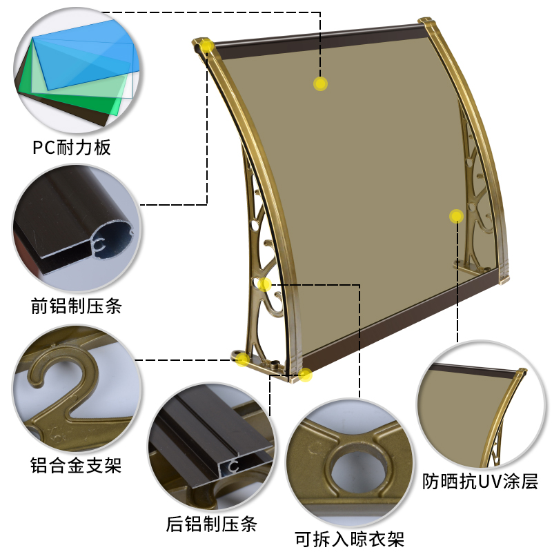 Outdoor aluminum alloy awning awning rainproof balcony window home awning eaves rain shield silent rain build