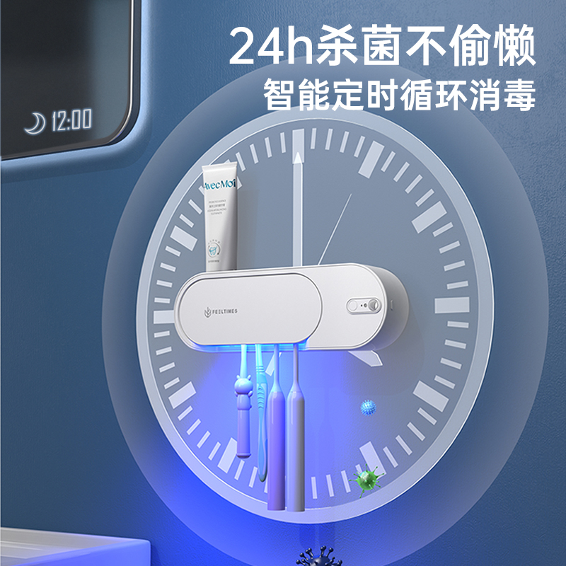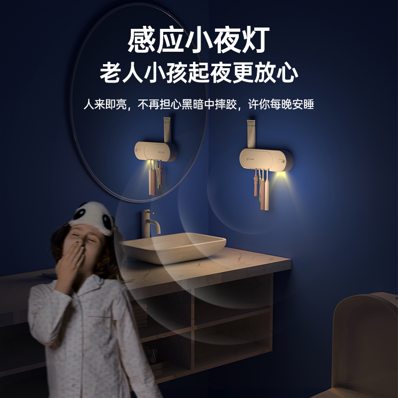 Intelligent electric toothbrush sterilizer ultraviolet sterilization toilet night light free punch wall hanging storage shelf