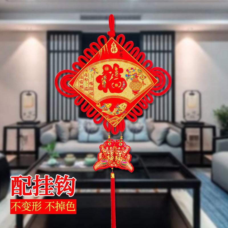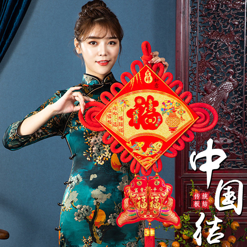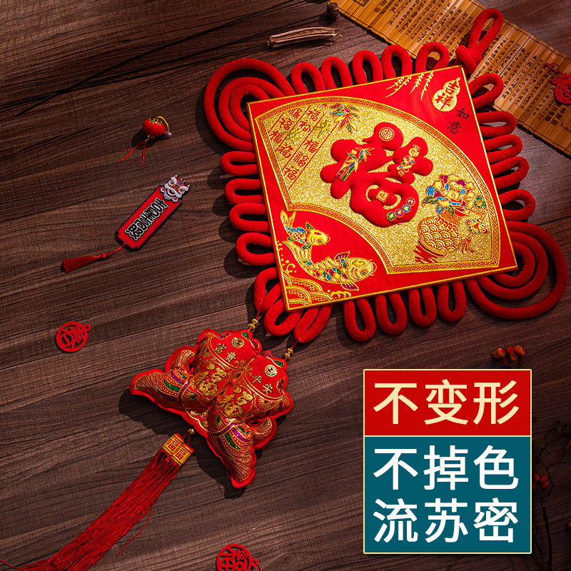 Fu word China knot decorated living room small number decoration wall-hanging Xuanguan Spring Festival New house New house background wall big number hanging decoration