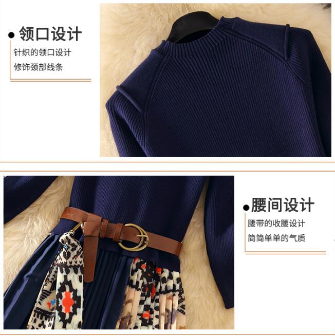Elegant knitted Patchwork Pleated Midi Dress 2019 Fall Wint
