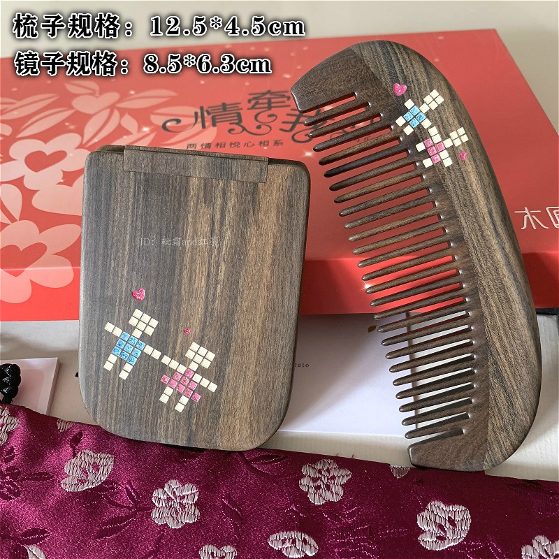 Tan carpenter comb gift box romantic love natural wood comb makeup lipstick mirror couple gift lettering