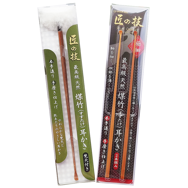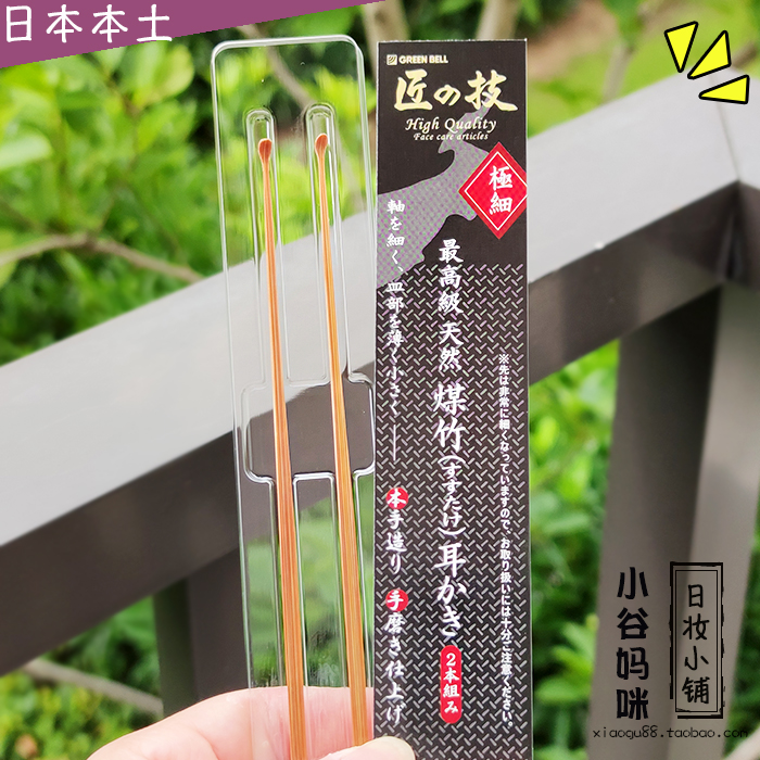 Japan GreenBell Greenbelle Ear Pickers Craftsmanship Coal Bamboo Thin Shafts Handmade Earthen Ear Spoons