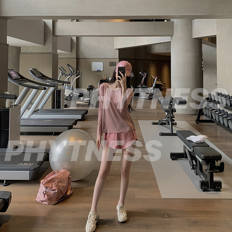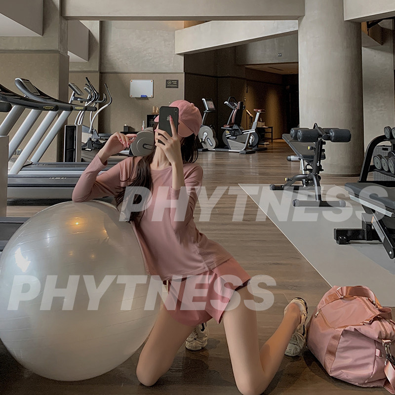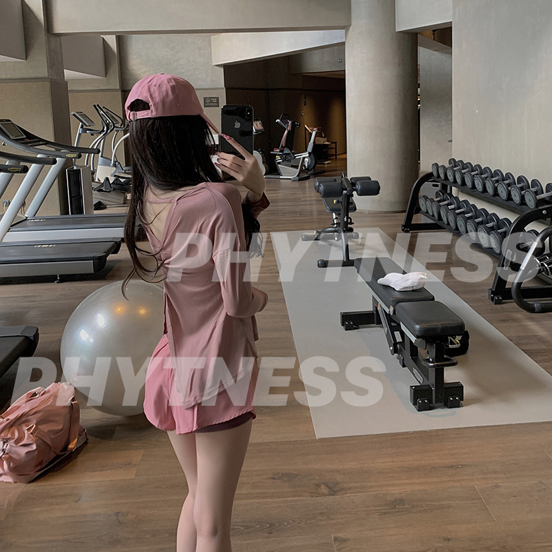 PHYTNESS 2021 new pink loose beauty back triangle hollowed-out fitness coat long sleeve yoga suit without chest cushion-Taobao