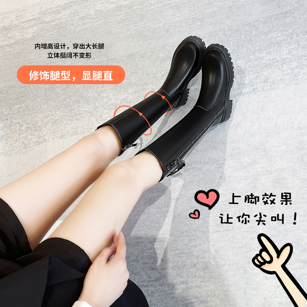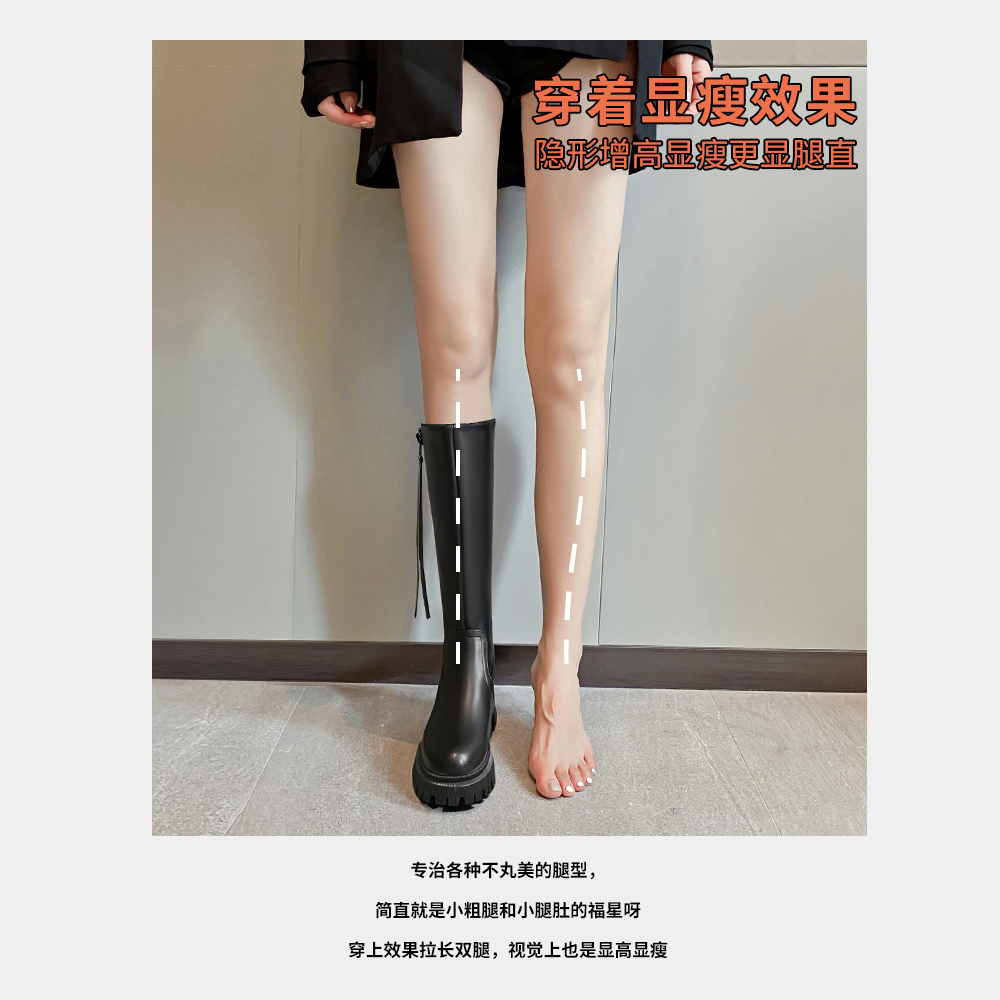 Straight tube boots women's 2022 new Martin riding boots thick bottom spring and autumn all-match elastic high tube but knee boots
