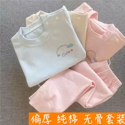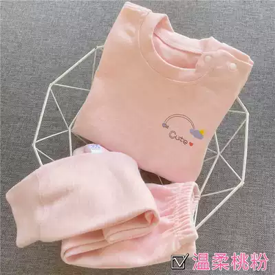 Boneless Sew Baby autumn clothes sanitary pants category a set cotton men's and women's children's clothing seamless thick underwear velvet middle collar 1-6