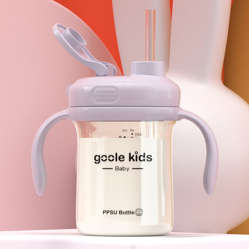 Children's water cup big baby weaning straight drink cup with scale milk cup resistant fall anti-fall drink milk drink water cup ppsu
