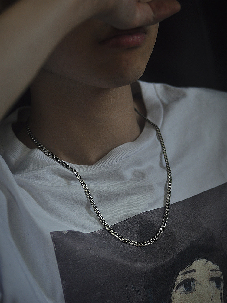 925 sterling silver snake bone chain men's trendy basic wild collarbone chain simple ins Japanese and Korean boys Cuban hip-hop necklace