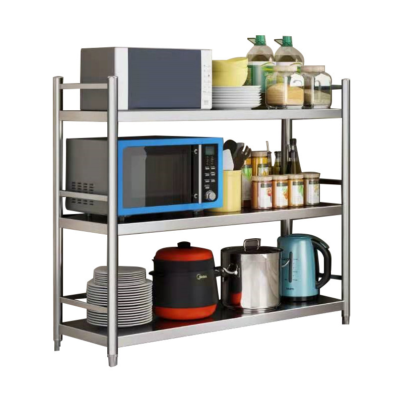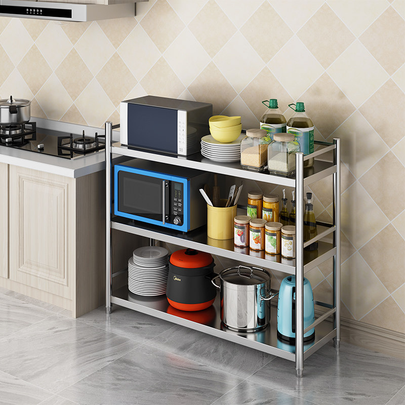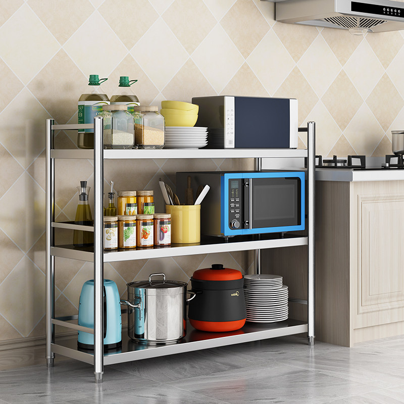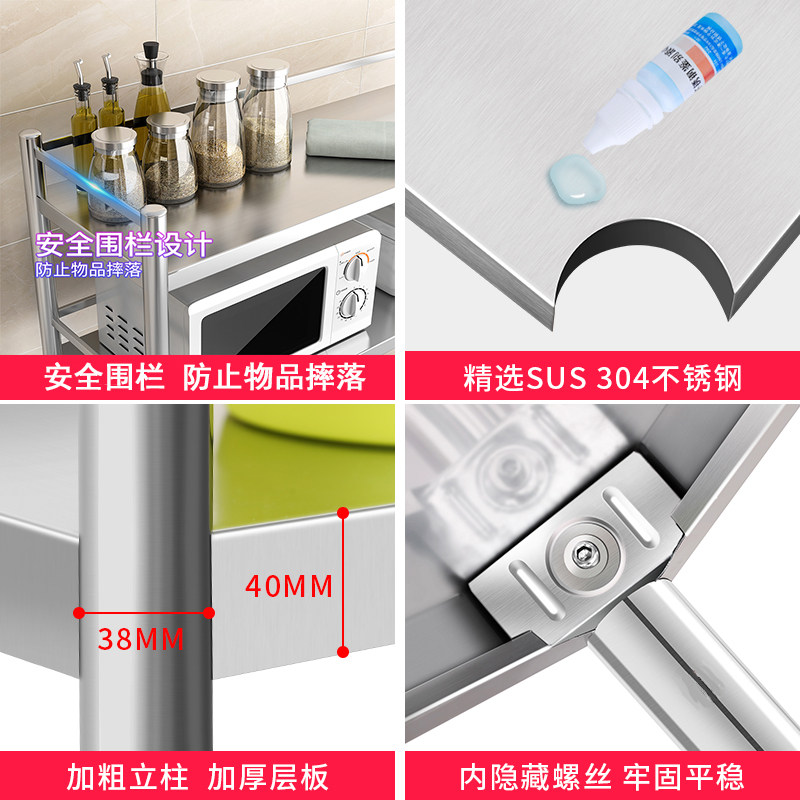 304 stainless steel shelf floor multi-layer kitchen storage rack three-layer storage rack microwave oven rack with fence