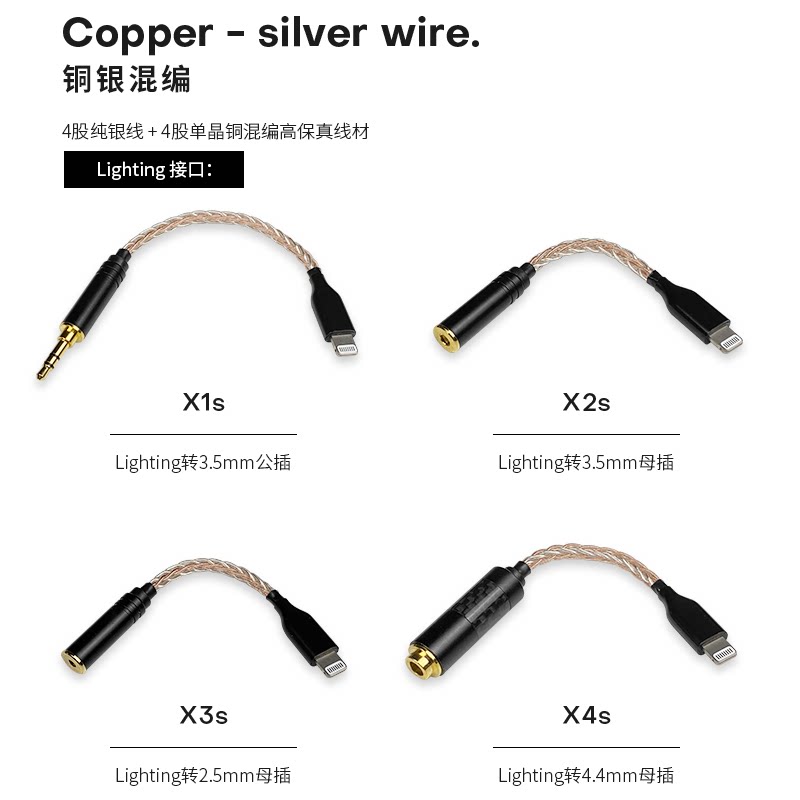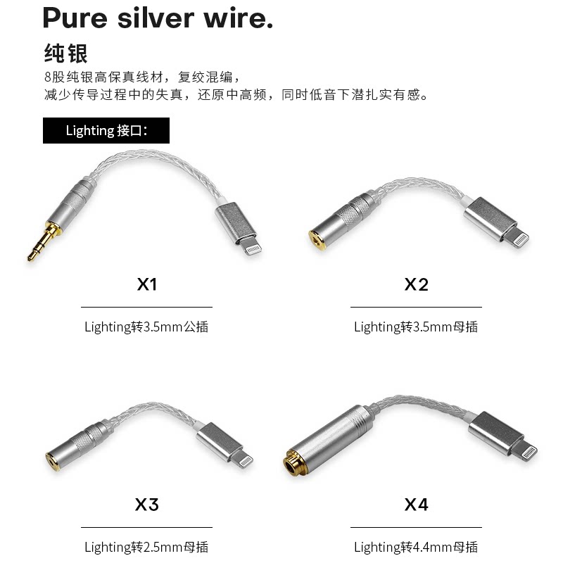 Apple interface to 3 5mm (monocrystalline copper silver wire mixed) Apple interface to 3 5mm (sterling silver) Apple interface to 2 5mm (monocrystalline copper silver wire mixed) Apple