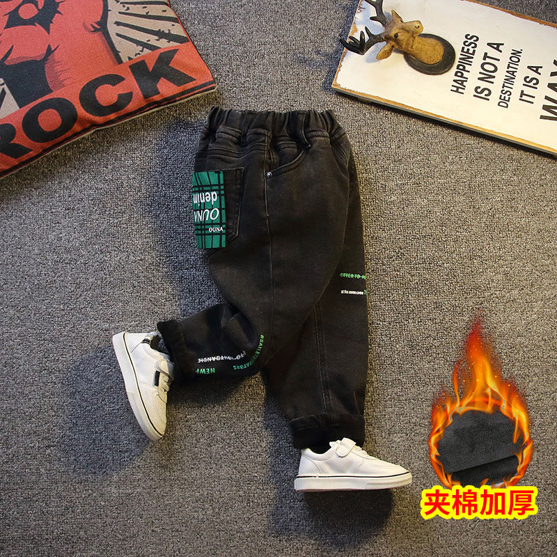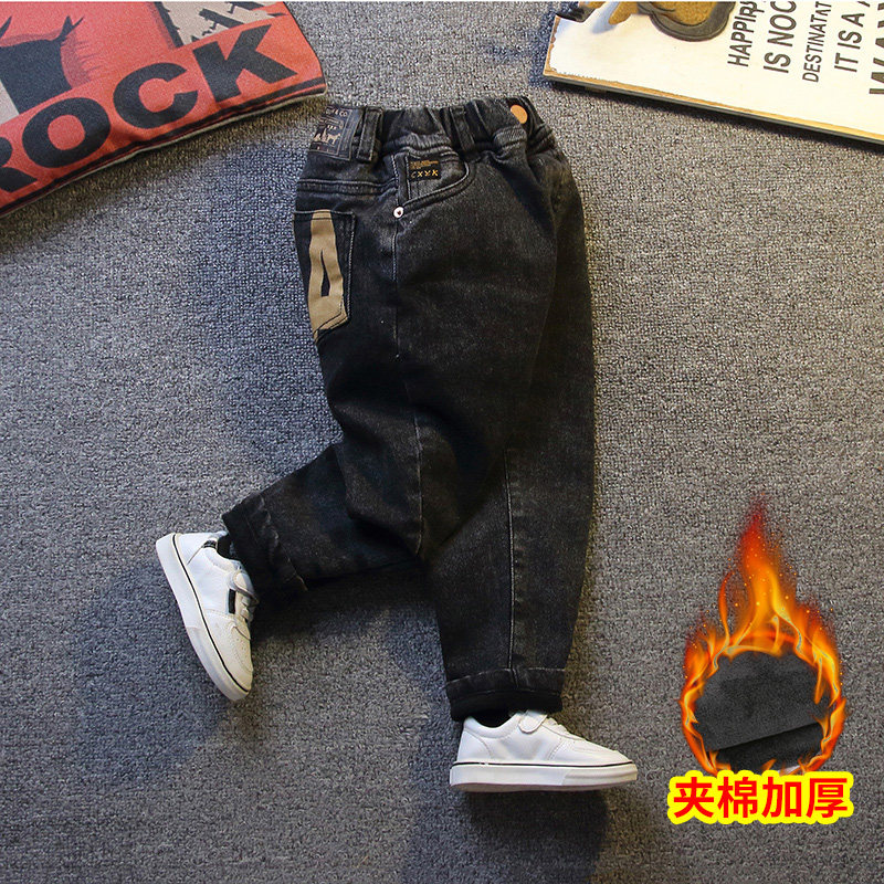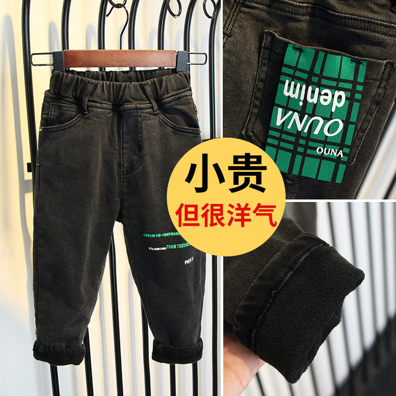 Boys velvet pants Autumn and winter children's winter jeans Boys thickened Foreign school in the big children's one-piece velvet pants tide