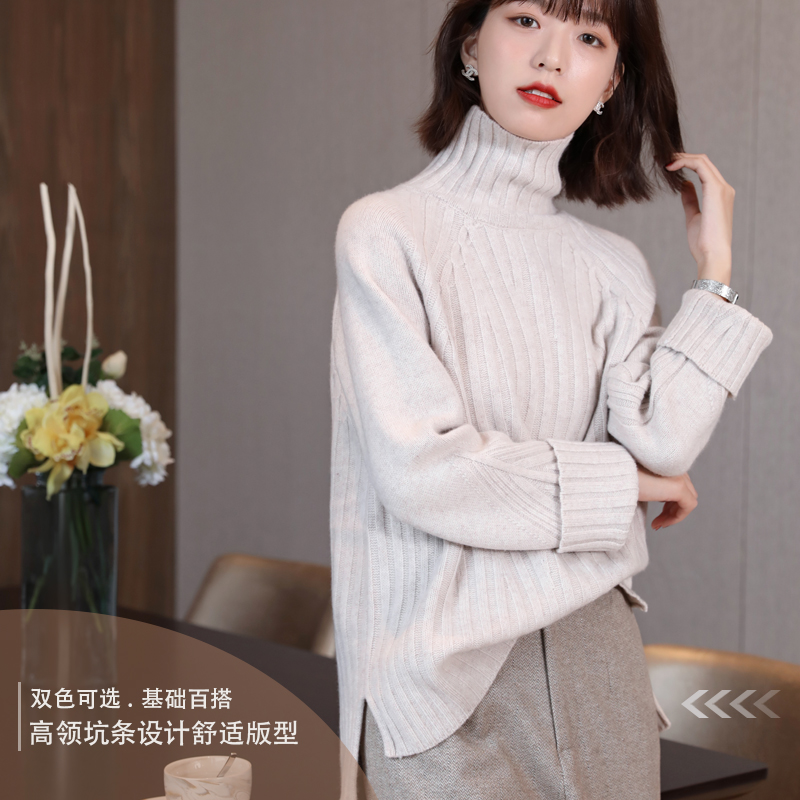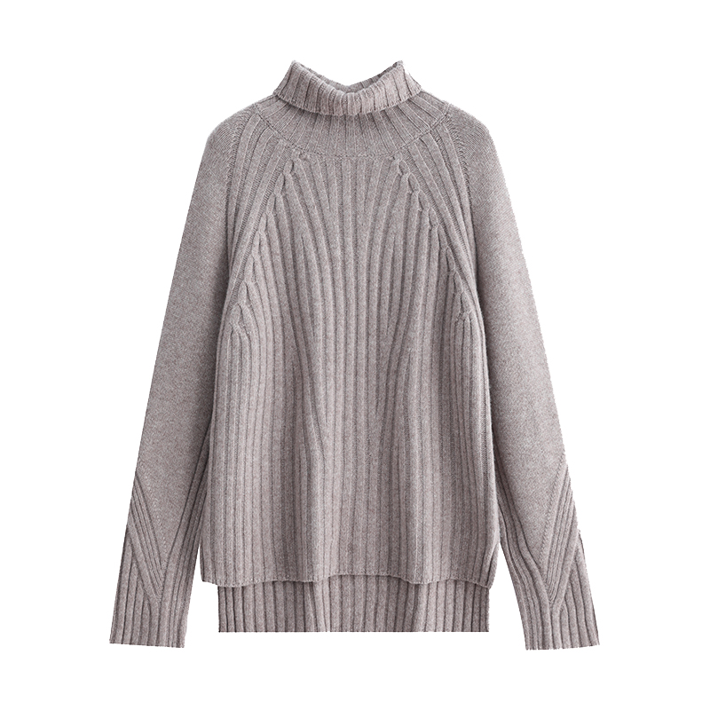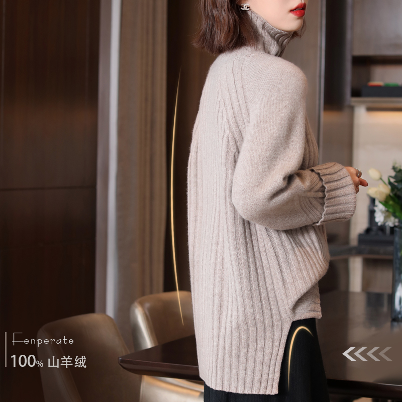 FENPERATE 2021 autumn winter new pure colour high collar swing open fork thickened wool outside wearing a knitted sweater