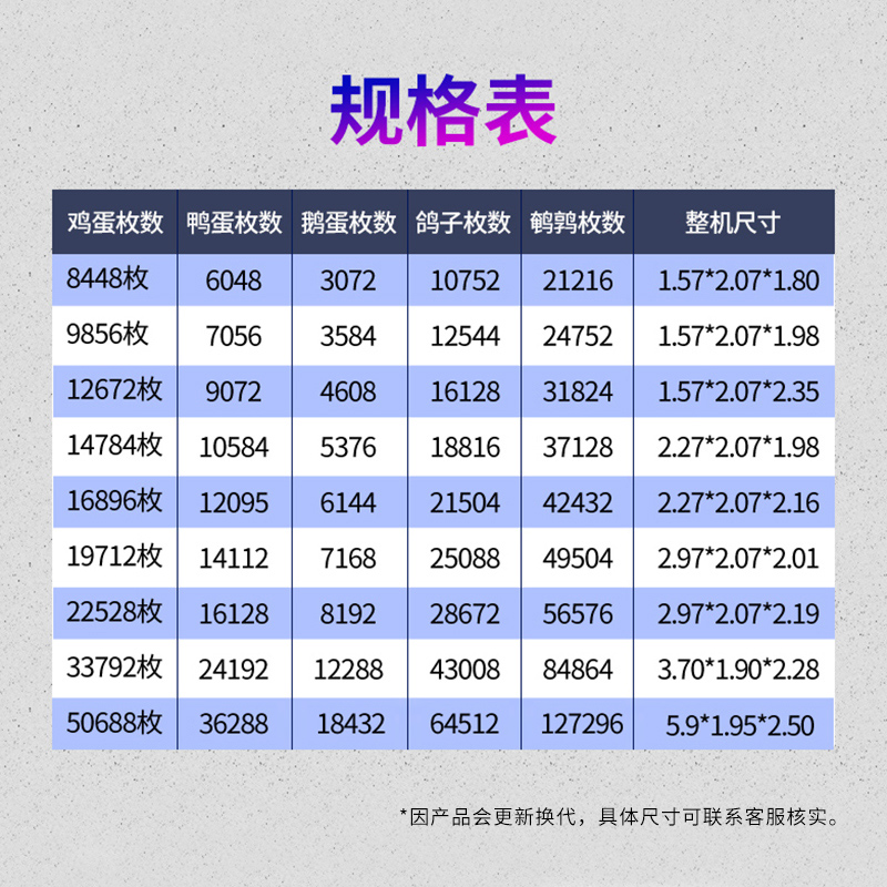 Egg car default All prices without baskets 8448 fully automatic integrated incubators 9856 fully automatic integrated incubators 12672 fully automatic integrated incubators 14784