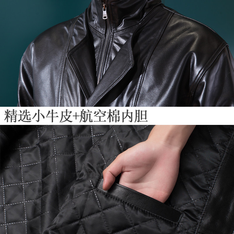 Genuine leather jacket men's first layer cowhide middle-aged and elderly pilot leather jacket men's plus velvet thickening air force winter riding suit