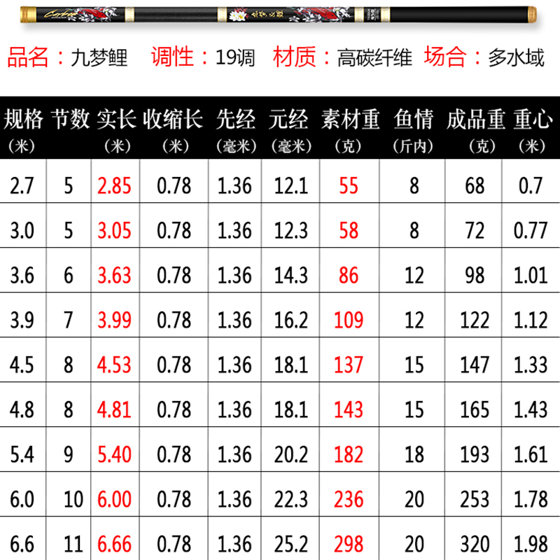 2 7m bare rod, rod slightly stop line card, 27m luxury fishing gift bag, 30m bare rod, slightly rod stop line card, 30m luxury fishing gift bag, 36m bare rod, rod
