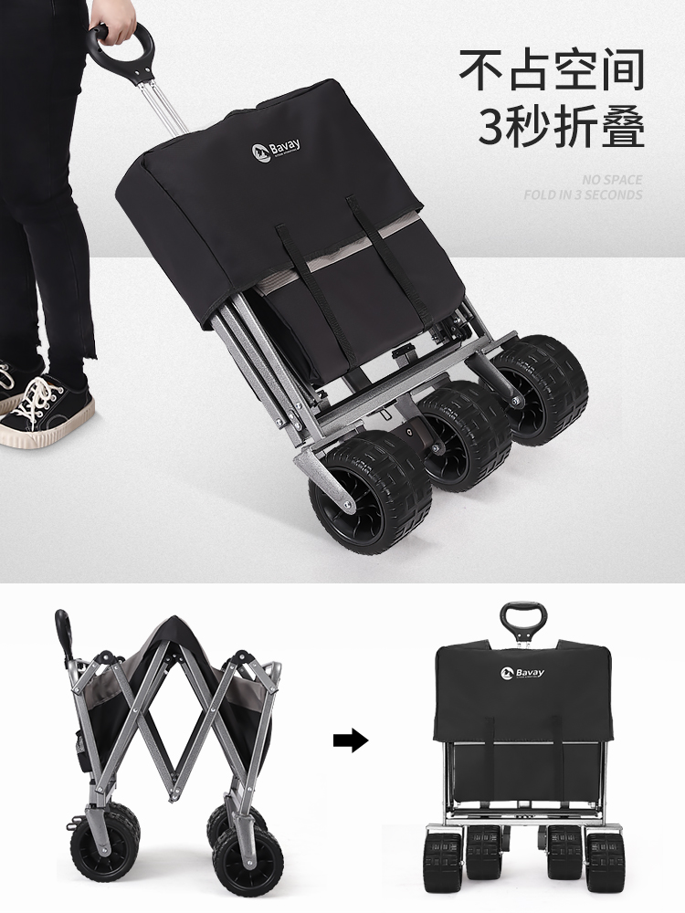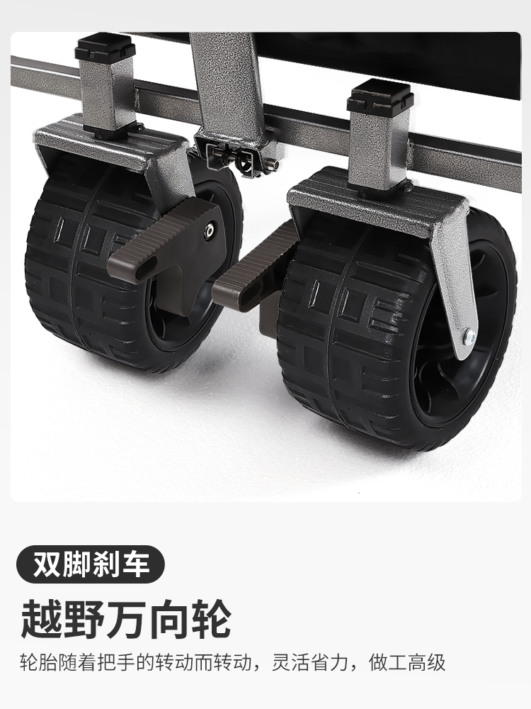 Comfort model (beige) with double brakes, foldable and can stand, aluminum alloy pull rod. Comfort model (black gray) with double brakes, foldable and can stand, aluminum alloy pull rod. Upgraded model (beige), double brake off-road wheel.