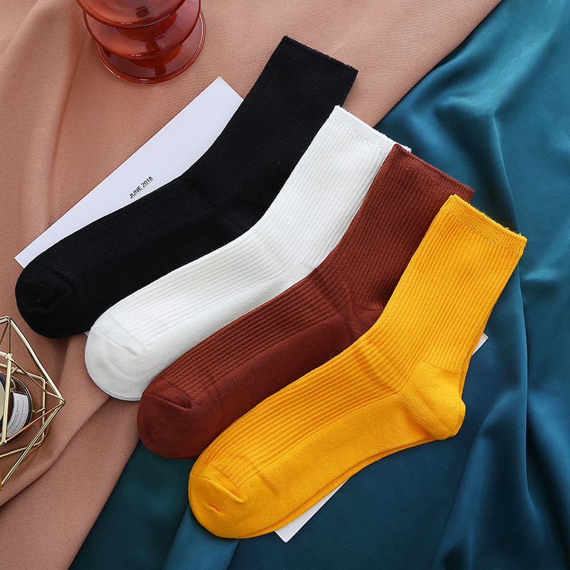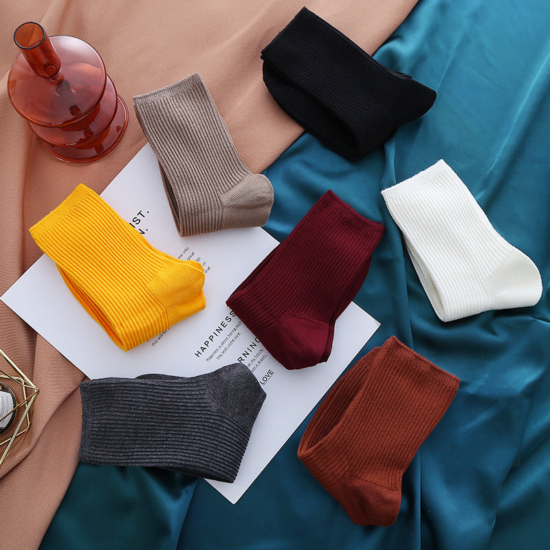 5 pairs of socks female midbarrel socks with trendy autumn and winter thickened warm cotton socks Women's pure cotton deodorant couple Long Sox