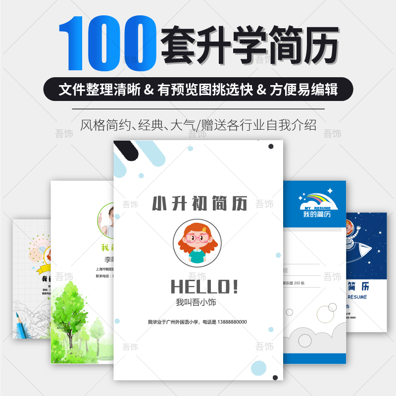 Small-liter start high-end resume template for young elementary school students to enroll in school study resumes to make personal customized templates