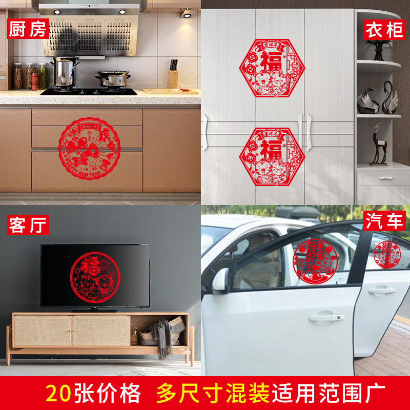 2022 Year of the Tiger Spring Festival New Year decoration electrostatic paste glass wall paste door festive New Year scene layout supplies