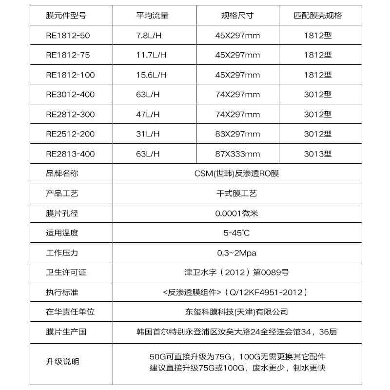 CSM Shihan RO membrane 50G75G100G400G Shihan membrane water purifier reverse osmosis membrane pure water machine universal filter element