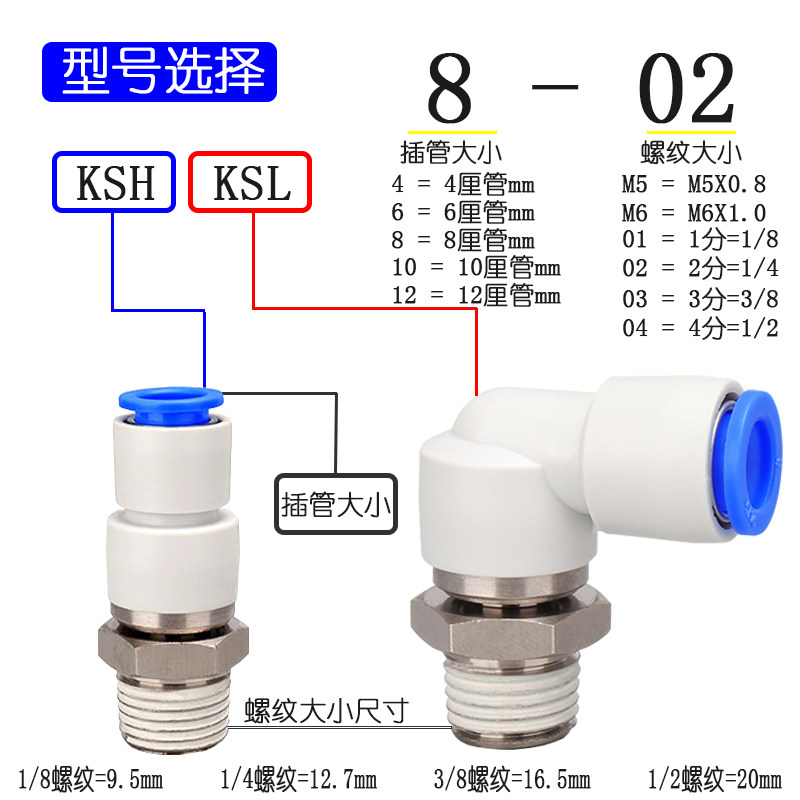 Jijia pneumatic high-speed rotary joint KSH right-angle elbow KSL4 6 8 10 12-M5 01 020304