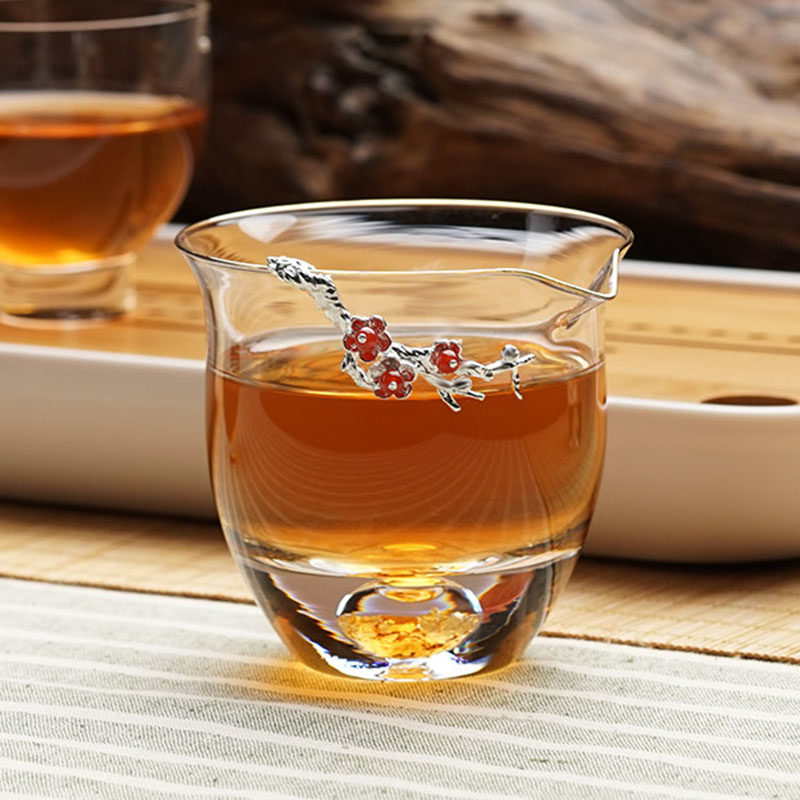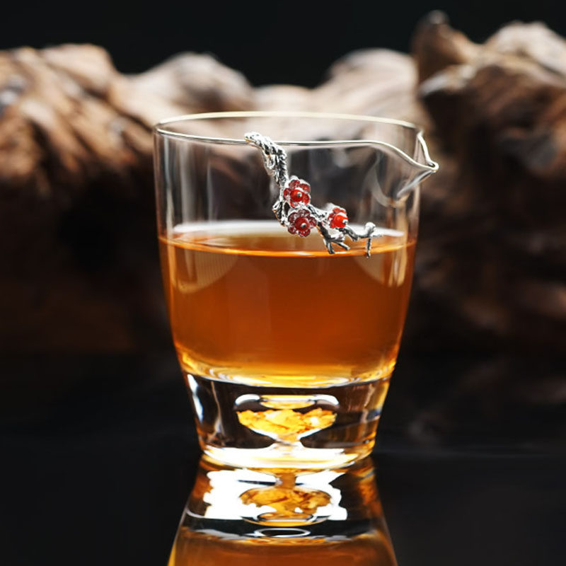 HCNTES inlaid silver justice cup home transparent retro creative thickened double-layer heat-resistant high-temperature Japanese-style tea divider