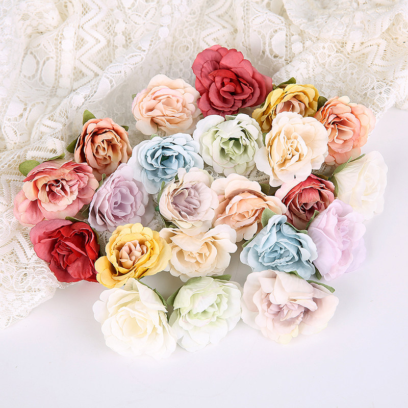 Emulation Rose head fake floral bouquet DIY floral headwear Chest Flower Material Home Wedding Celebration Flower Wall Decoration