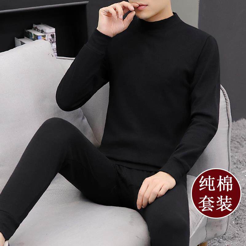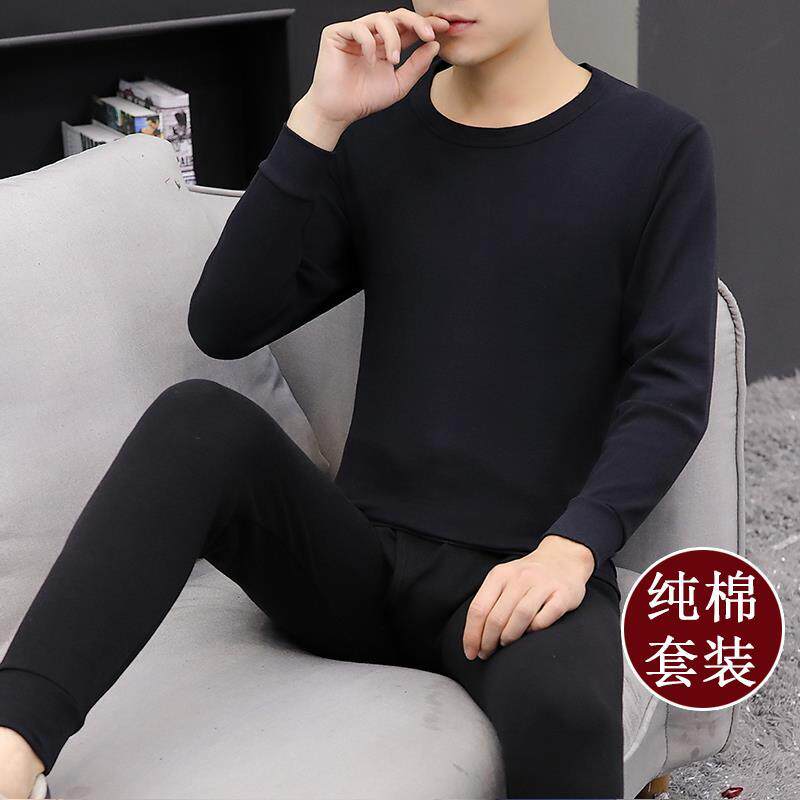 Tide brand men's autumn clothes and long johns suit trend personality sports cotton thermal underwear men's autumn and winter youth cotton sweater