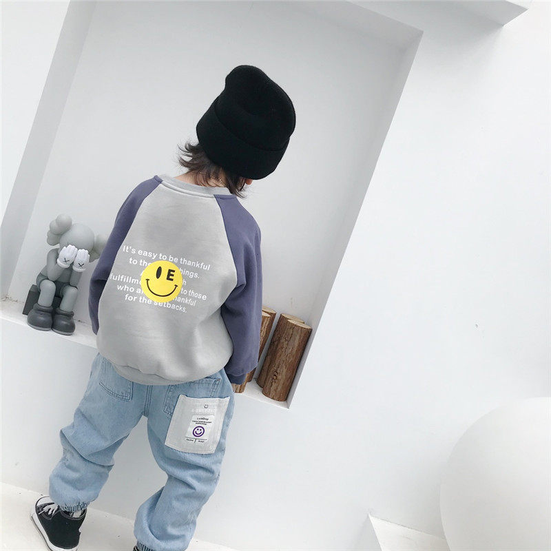 Boys smiling face plus velvet thick cotton T2021 new children's autumn and winter pullovers children's warm tops