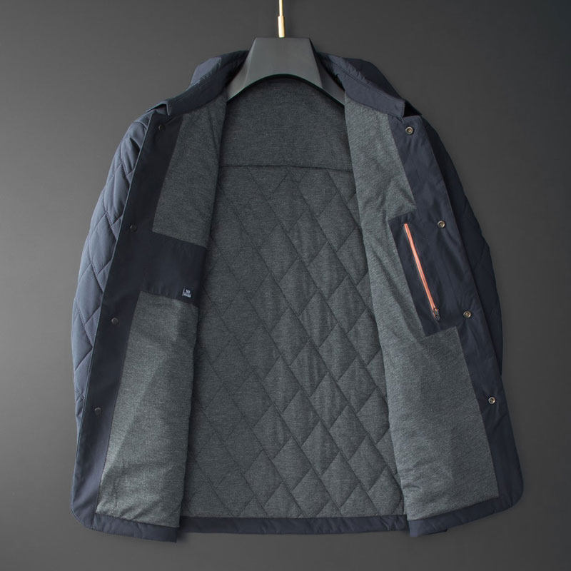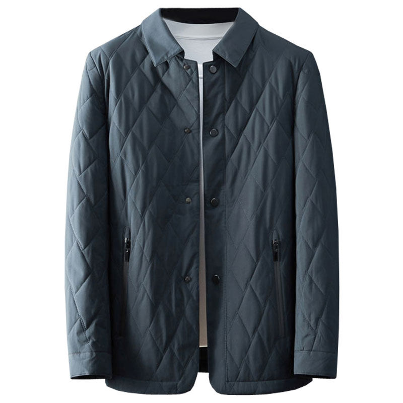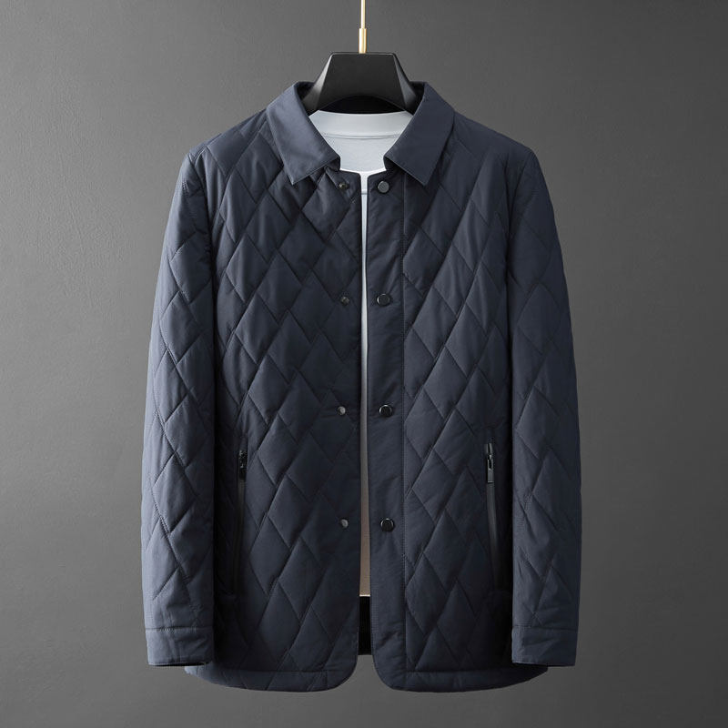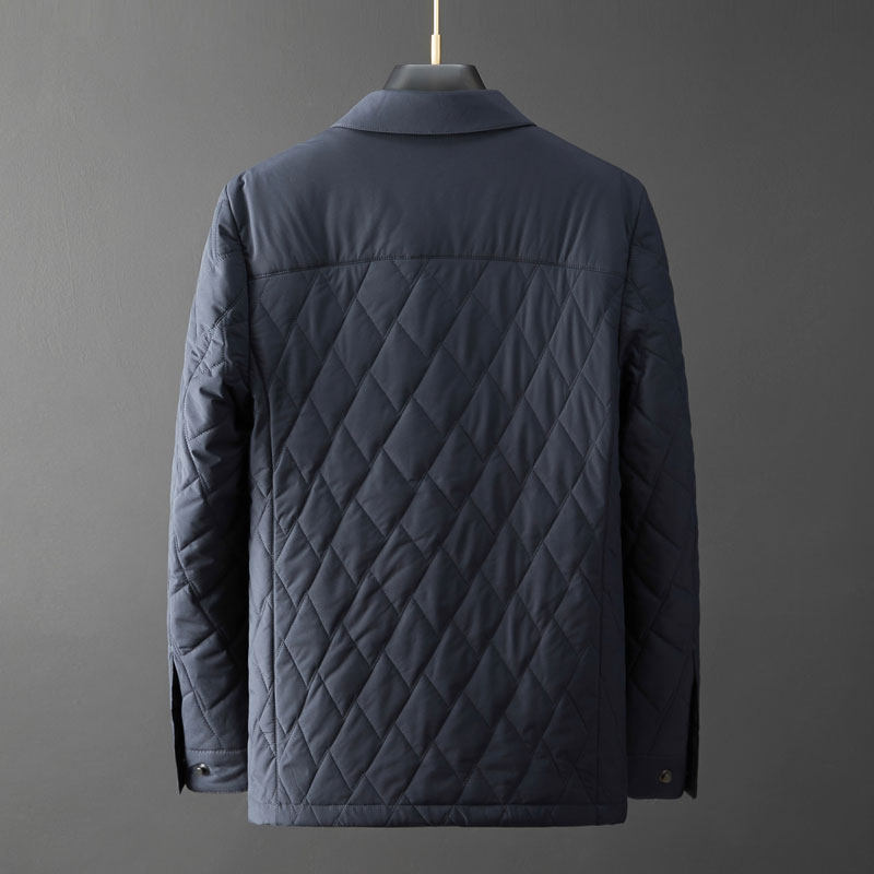 Autumn and winter new diamond grid light lapel shop cotton jacket men's single-breasted fashion business casual warm quilted jacket