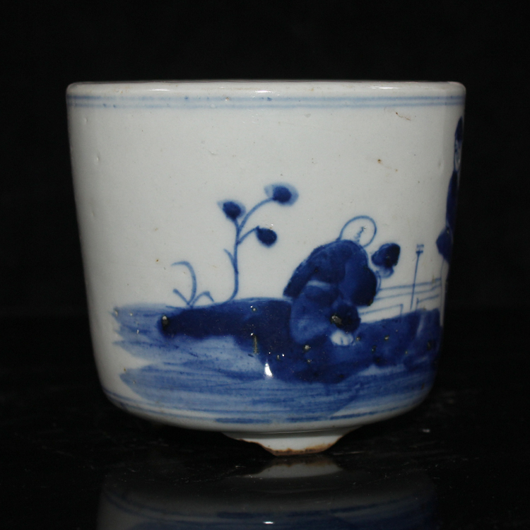 Jingdezhen Handmade Painting Green Flowers Figure Three Foot Incense Stove Kiln Cracked Needle Eye Glaze Lower Color Folk Kiln Instrumental Shape Chinese Pendulum Ming-Taobao