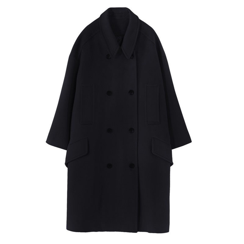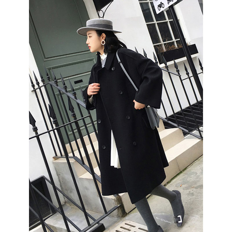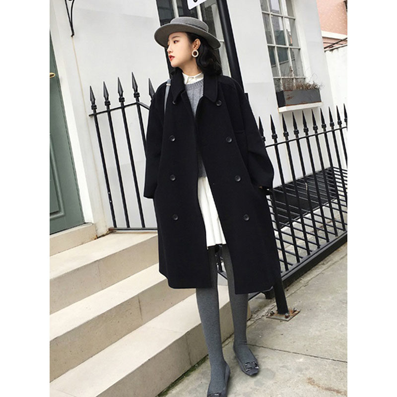 Black double-sided cashmere coat women's middle school long version autumn and winter 2021 new temperament slim retro thick wool