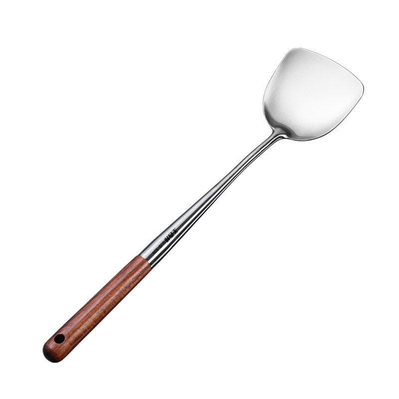 Long handle 304 stainless steel pan shovel fried vegetable turner suit anti-scalding ultra-long wood handle lengthened spoon chef sauté vegetable spoon