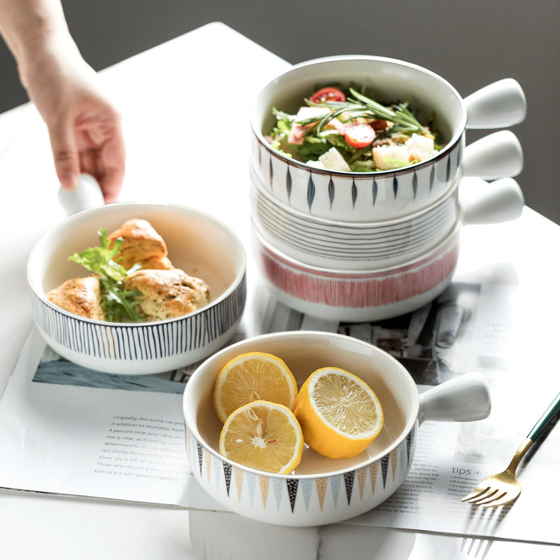 Triangular Edge Handlebar Bowl (dishwasher microwave Blue Leaf Handlebar Bowl (holding the fried rice Fruit Red Line Handlebar Bowl black coil handlebar Bowl Blue Line Handlebar Bowl