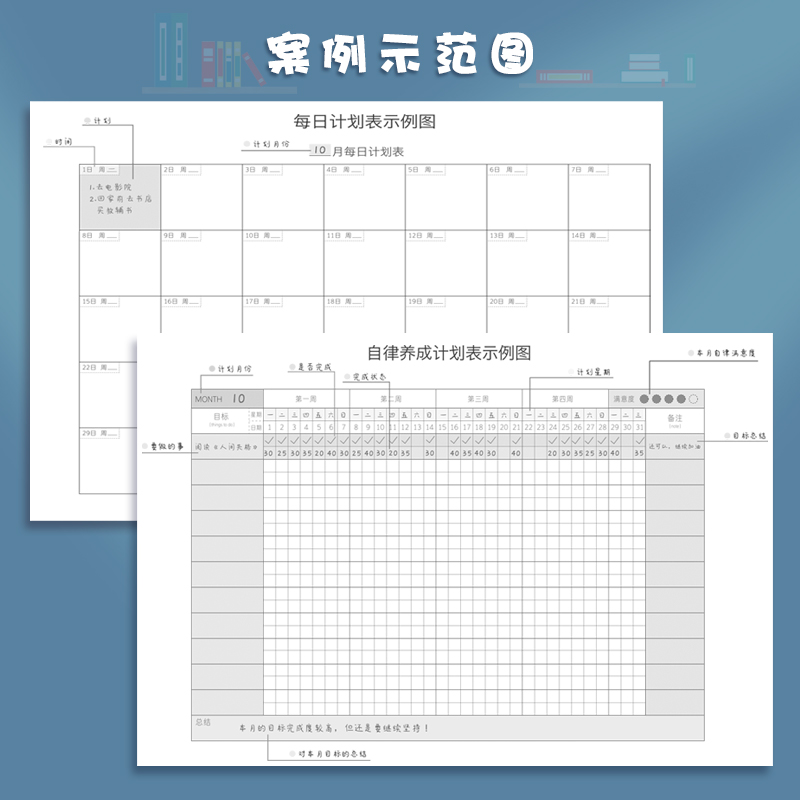 Self-discipline card task daily planning this habit to develop time management axis todolist month week planning student schedule mind map this sub-table calendar study special stationery for postgraduate study