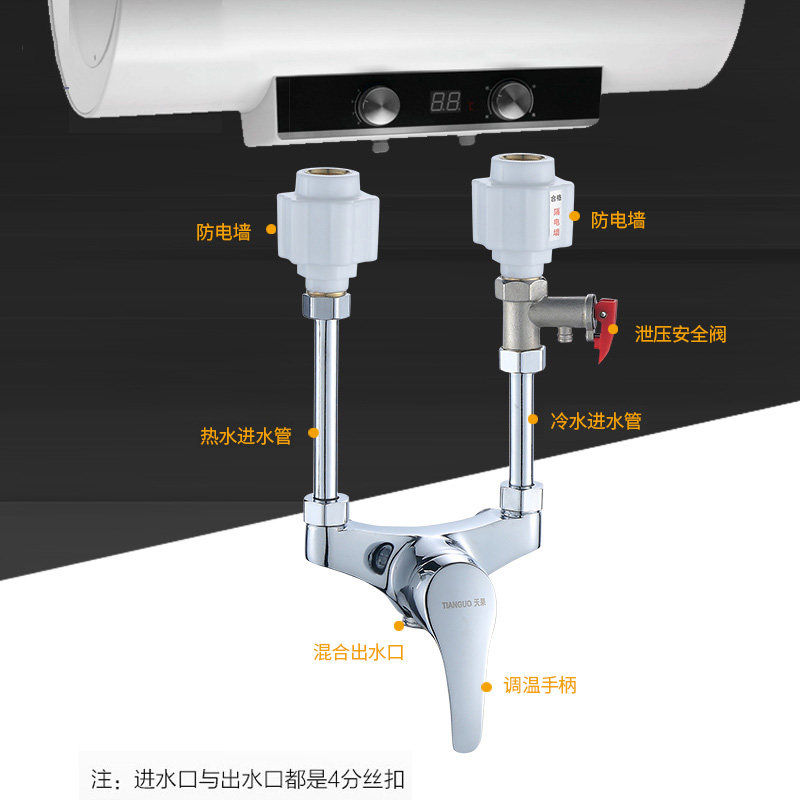 Section B 304 shower suit pair of insulation electric wall C subsection pressure relief valve brass safety valve C Enlarged Lengthened Brass water mixing valve A with 304 shower suit C Pressure Relief Valve