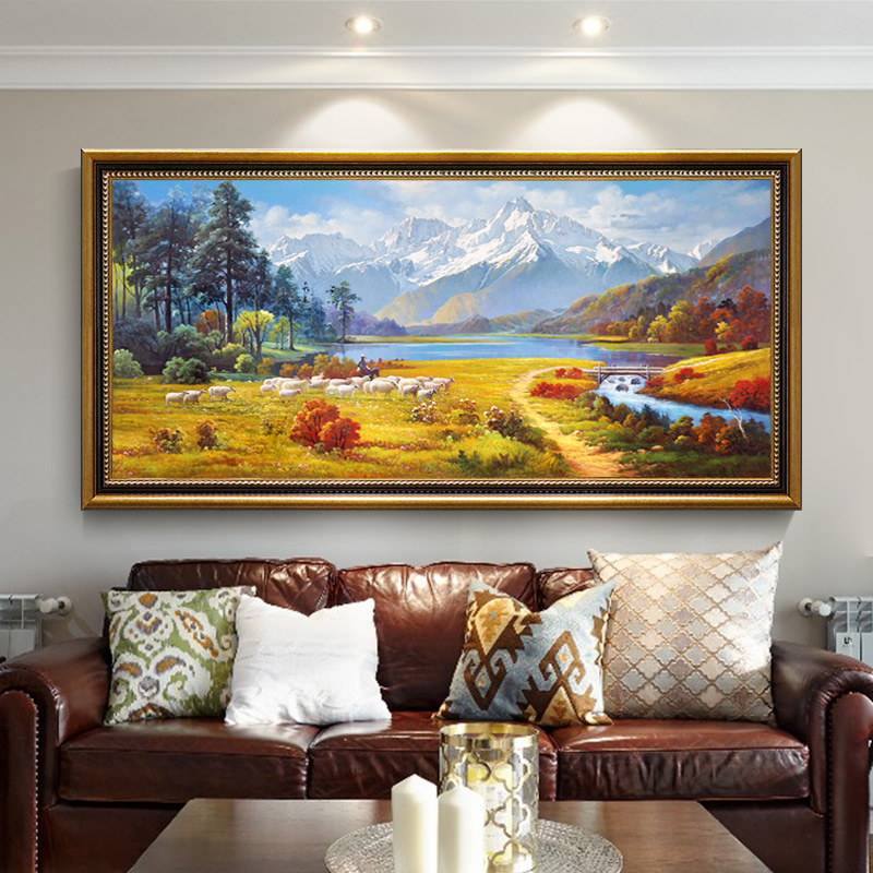 Landscape oil painting hanging painting living room American porch pure hand-painted European decorative painting landscape mural custom Dafen Village