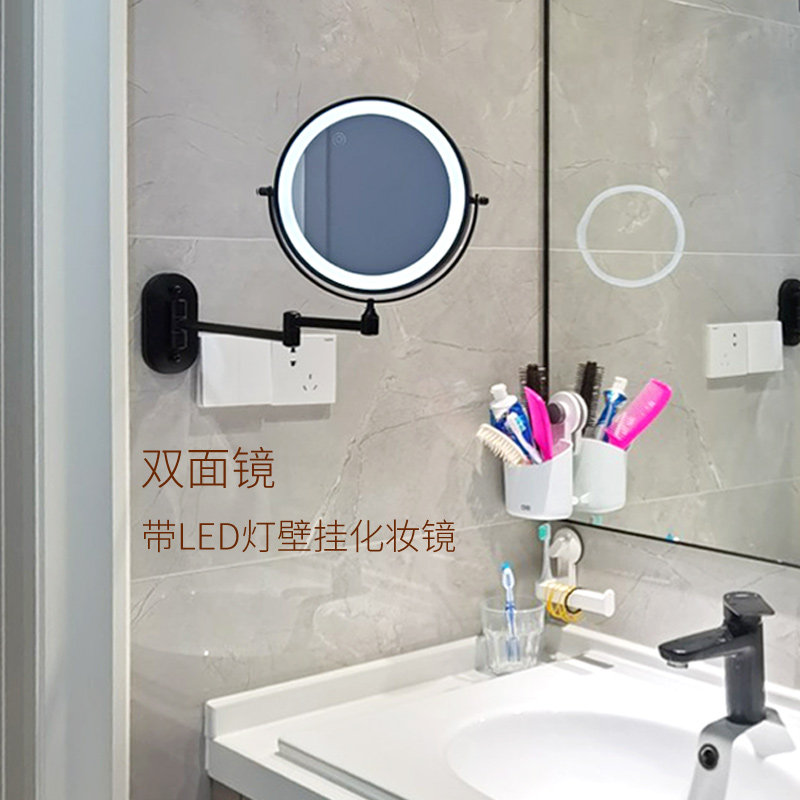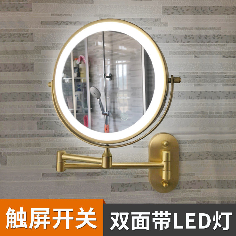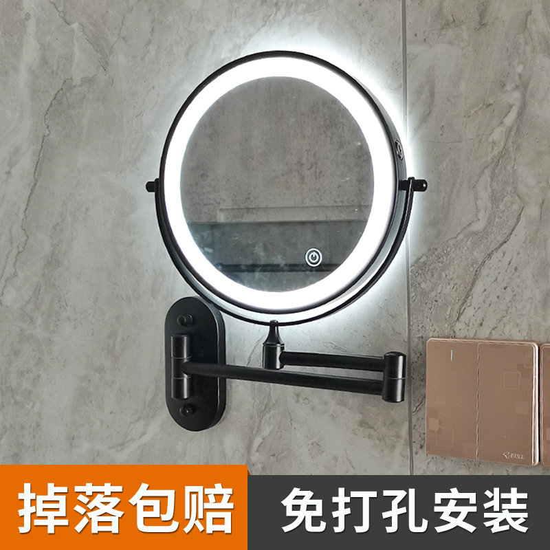 Bathroom mirror Hole-free folding telescopic mirror Magnifying makeup mirror Powder room beauty mirror with lamp makeup mirror Wall hanging