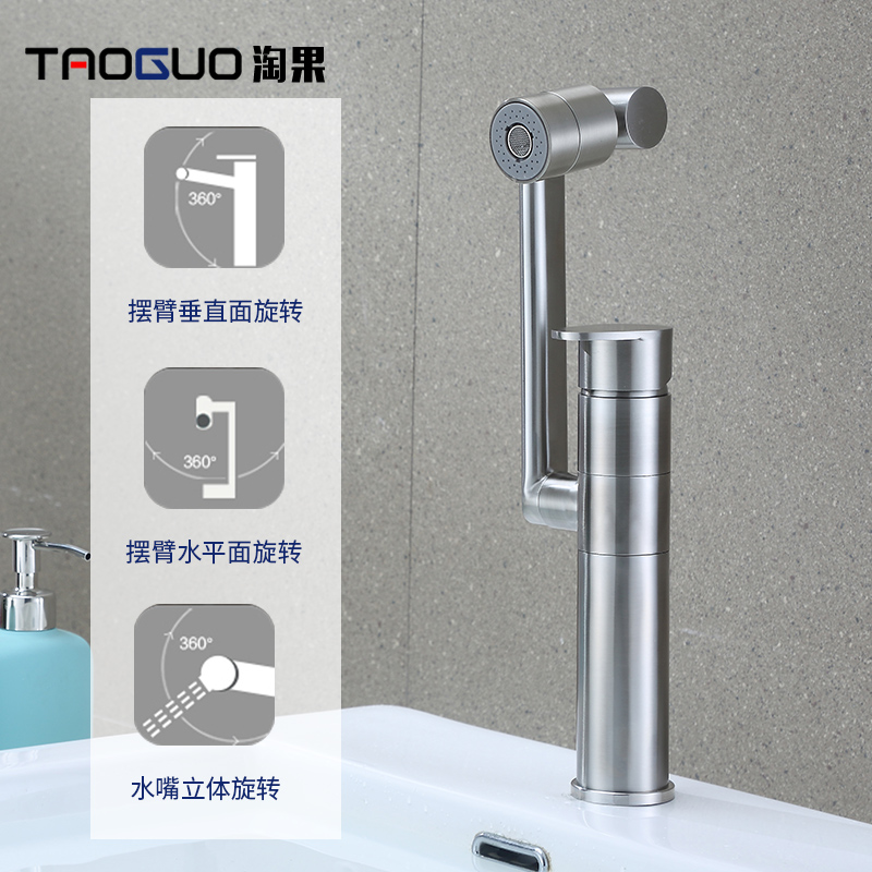 Stainless steel basin hot and cold antifreeze faucet wash face makeup room household heightened single hole universal rotation