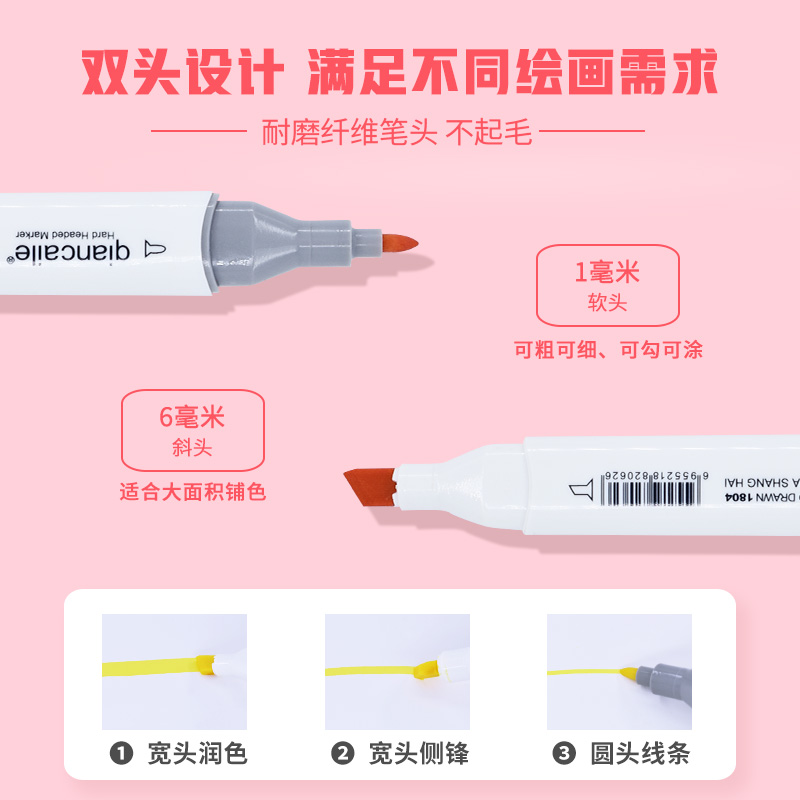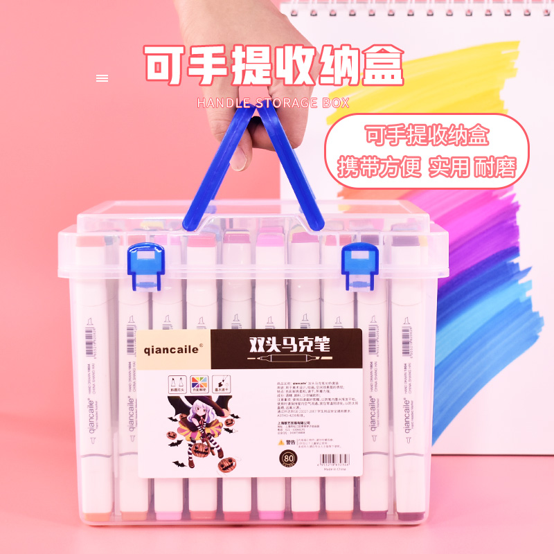 Qiancai Le 1804 series 36-color double-headed oily microphone pen 48-color student set 60-color primary school children's painting pen single complementary color beginner 80-color portable portable gift box