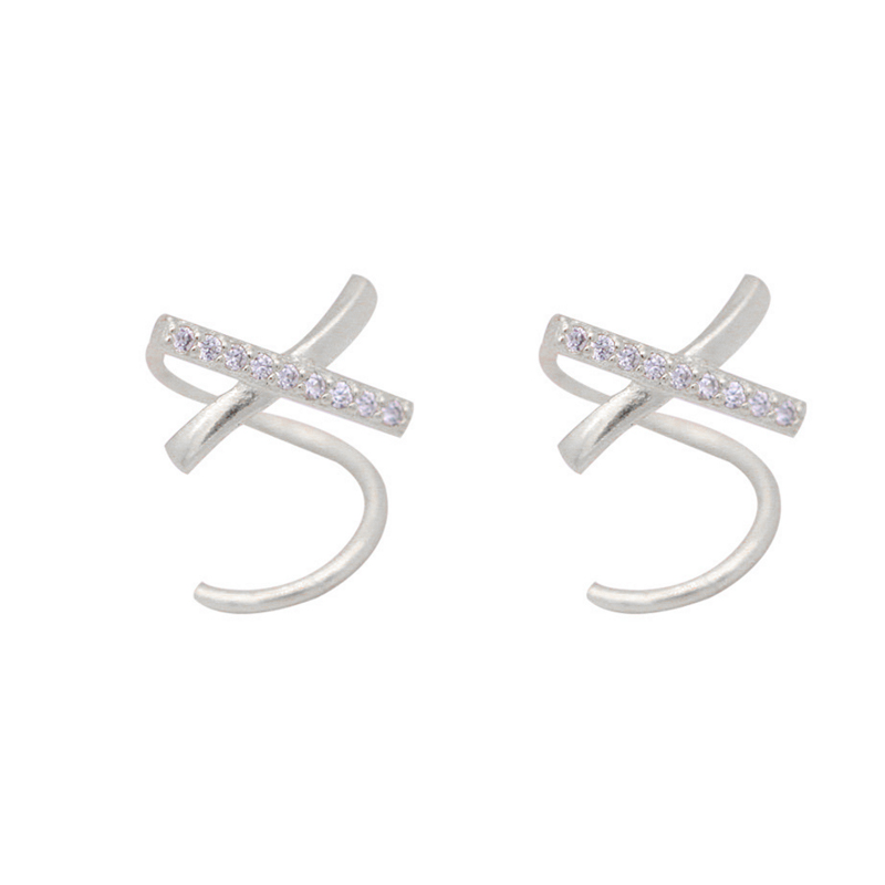 s925 Silver - ear nails fresh and simple cross - cross - cross alphabet X - Han - tai ear accessories advanced sense