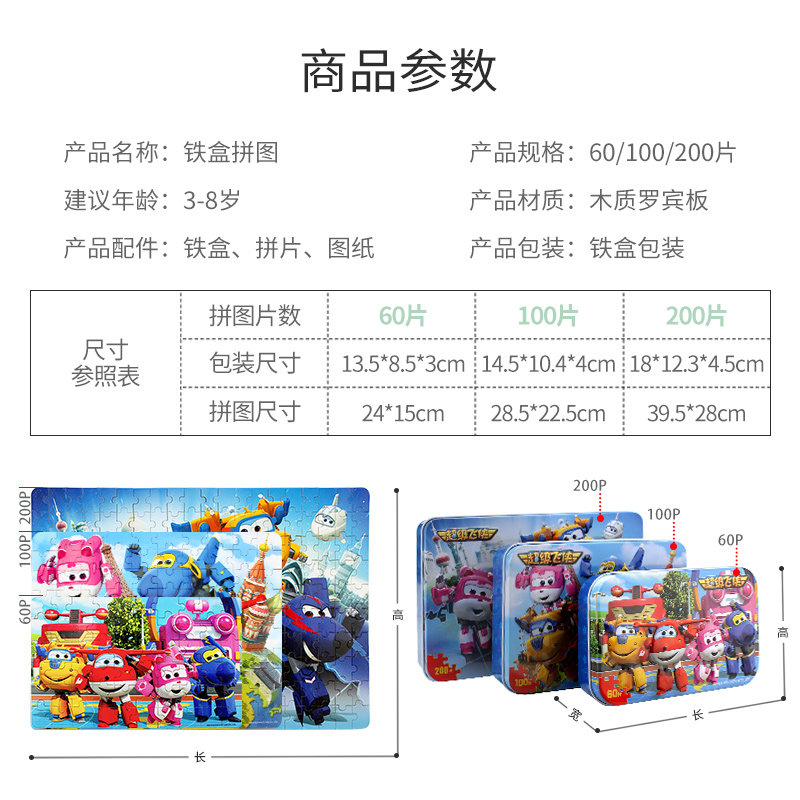 Super Fly-Man Children Puzzle Puzzle Puzzle Toy Boy Iron Box Wood 60 100 100 Pieces 200 Slices Birthday Present