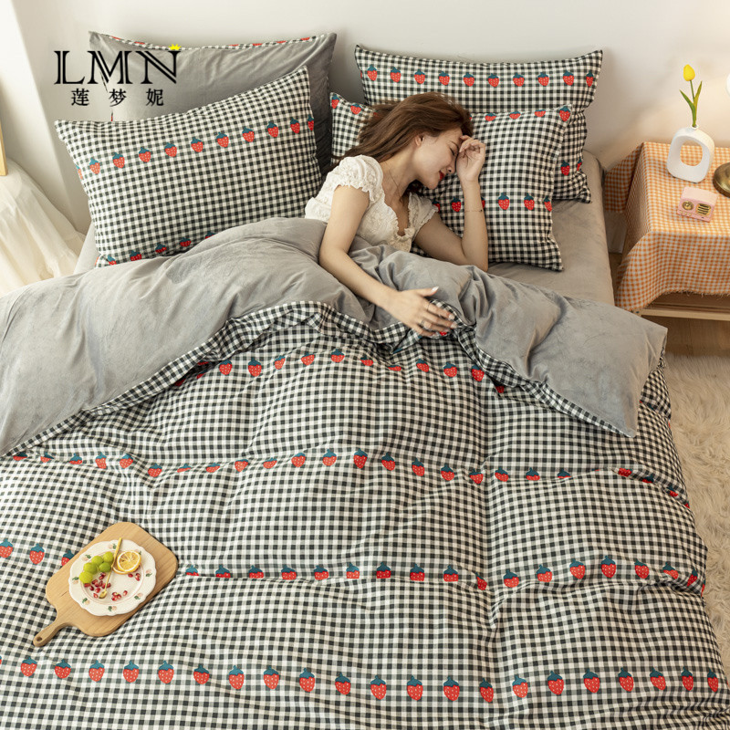 Four sets of 2020 winter crystal velvet warm flannel flannel sheets are set in a suite of three pieces